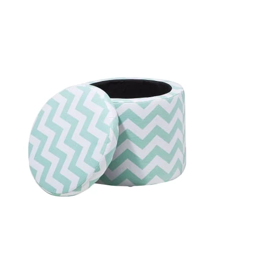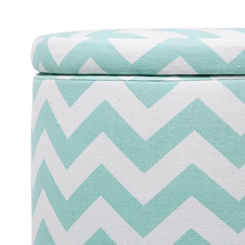 Ottoman multifonction en forme cylindrique. Cet ottoman original en forme cylindrique mesure 35x35x30 cm. Il est multiusage, il peut aussi bien servir de tabouret que de repose-pieds et surtout permet de stocker n’importe quel objet. L’assiseest très moelleuse et confortable, il sera l’élément idéal dans votre salon, dans votre coin lecture ou bien dans votre chambre. Il possède également des petits pieds discrets d’une hauteur de 3 mm, afin de vous assurez une assise stable. En outre de son côté pratique, il ajoutera un atout décoratif non négligeable avec son design et ses motifs. Dites stop aux désordres ! N’entassez plus vos affaires et stocker absolument tout dans ce coffre !Détails: Type de produit: Pouf Style: Moderne Couleur principale: Vert Nuance: Vert menthe Type de matière: Tissu Matière principale: Coton Matière secondaire: Matière synthétique Composition de la matière: 100% Coton Forme: Rond Motif: À chevron Rangement: Oui Dimensions: Profondeur: 35 cm Largeur: 35 cm Hauteur: 30 cm Poids: 3 kg Charge admise: 130 kg L`offre inclue: 1 x Ottoman Caractéristiques clés: Rangement facile d’accès pour les enfants, Style rétro, Espace de rangement fonctionnel, Entièrement rembourré sur tous les côtés, Multifonctionnel Informations d`assemblage: Ne nécessite pas d’assemblage Conseils de maintenance: Coton: 1. Aspirez en utilisant l’embout approprié 2. Nettoyez avec un shampooing sec ou une éponge humide et un nettoyant doux.