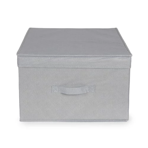 Permet d’organiser les placards Protège le linge et les vêtements Carton recouvert de tissu Se replie quand on ne l’utilise pas Faire le tri et organiser ses placards deviendra beaucoup plus facile avec cette boîte qui permet de ranger ses affaires par catégorie : la lingerie d’un côté, les chaussettes ou accessoires de l’autre, le linge de maison par taille ou par couleur. C’est pratique pour s’y retrouver facilement quand on n’a pas de tiroir dans le dressing ou quand ceux-ci sont déjà pleins. Cette boîte de rangement est en carton recouvert de non tissé à chevrons gris/blancs à l’extérieur, uni à l’intérieur. Elle existe en plusieurs formats, tous parfaitement coordonnés à notre gamme de rangement Boston. Pour faciliter le transport, elle est livrée à plat et se déplie d’un geste pour le montage. Dimensions : 40 x 50 x H.25cm. Notre astuce : glissez un sachet de senteur ou quelques plaques et billes de cèdre au fond de la boîte pour parfumer votre linge. De la cave au grenier, dans l’entrée comme dans la chambre ou la salle de bain, Compactor, leader européen du rangement, vous aide à organiser la maison grâce à des solutions de rangement à la fois fonctionnelles et esthétiques. Pour gagner du temps et vous simplifier la vie, pour le simple plaisir des yeux aussi, rangez pas à pas votre intérieur et découvrez le plaisir d’une maison où chaque chose trouve parfaitement sa place. Et faites confiance à l’expérience de Compactor, une société familiale française au service de vos rangements depuis 1983 ! LIVRAISON GRATUITE à partir de 60€