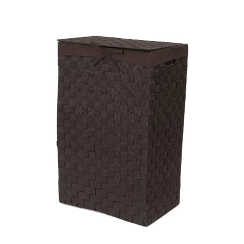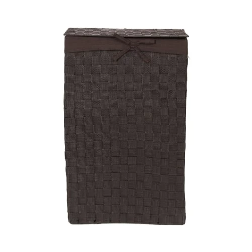 Grâce à son format rectangulaire, ce panier à linge Stan trouvera facilement sa place dans la chambre, la salle de bain ou la buanderie. Réalisé en sangles tressées couleur marron, il est renforcé par une armature métallique qui lui donne de la stabilité. Sa housse intérieure amovible en tissu coordonné évite au linge de s’accrocher et peut se laver en machine. Pratique, le couvercle permet de cacher le linge sale entre deux lavages. Livré à plat afin de faciliter la livraison, le panier à linge Stan se déplie et se monte facilement. Dimensions : 38 X 25 X H.60 cm Les paniers… C’est la plus jolie façon de ranger ! Naturels ou colorés, ils apportent la touche de fantaisie qui fait twister la déco. Si vous avez la place, associez plusieurs paniers à linge pour faciliter le tri du linge par catégorie. Quelle que soit la pièce, nous vous recommandons de multiplier les paniers d’un même modèle : l’effet visuel et l’impression d’organisation seront décuplés. Vous pouvez aussi juxtaposer plusieurs paniers de la même teinte ou de la même texture et les coordonner à l’ambiance générale de la pièce que vous rangez. L’harmonie des couleurs participe aussi au sentiment d’ordre et de sérénité.