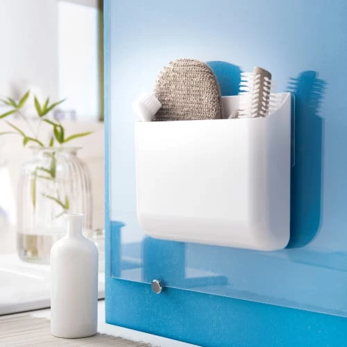 Fixation murale auto-adhésive sans clou ni vis ni perceuse Pose ultra-facile S’adapte sur toute surface lisse ou légèrement poreuse : carrelage,verre, métal,miroir ou mélamine 100 % waterproof Repositionnable à volonté Libérez vos plans de travail, dessus de lavabo ou de bureau et découvrez la magie du rangement mural ! Facile à installer sans vis ni perceuse, cette boîte de rangement se fixe au mur en un clin d’œil. Elle permet de mettre de l’ordre dans toutes ces choses qu’on aime avoir à portée de main mais qu’on a du mal à organiser : les ustensiles dans la cuisine, les accessoires de coiffure et de toilette dans la salle de bain mais aussi les magazines ou papier importants près du bureau. Grâce à Hang It, optimisez donc votre espace de vieet laissez parler votre imagination ! Cette boîte murale est en plastique polystyrène blanc avec angles arrondis. Dimensions 23,2 X 6,7 X H.19,6 cm. Patch de fixation auto-adhésif transparent et discret en SEBS et PET. Garantie waterproof. Peut supporter jusqu’à 3 kg. Repositionnable à volonté, la gamme Hang It vous aidera à ranger vos affaires en profitant de l’espace libre sur les murs. Pas besoin de savoir bricoler, la pose de la boîte Hang It se fait sans outils, en un clin d’œil: il suffit de faire le vide d’air en pressant et frottant le patch auto-adhésif transparent à l’emplacement désiré, puis de clipser la boîte de rangement sur le patch : c’est simple et efficace. Les boîtes Hang It se fixent sur toute surface lisse ou légèrement poreuse : carrelage,verre, métal,miroir ou mélamine. C’est donc la bonne solution quand on n’a pas beaucoup de meubles de rangement ou pas assez de place dans les tiroirs. C’est surtout la bonne idée quand on ne peut pas percer les murs parce qu’on est locataire. Si vous déménagez, sivos envies évoluent, c’est LIVRAISON GRATUITE à partir de 60€
