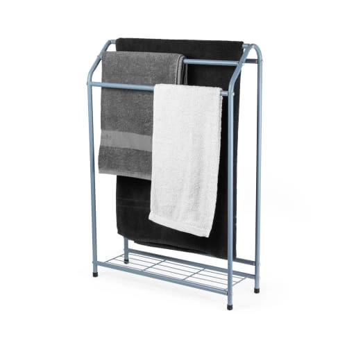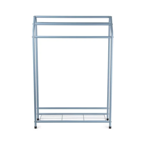 4 niveaux d’étendage Etagère grillagée à la base Peu encombrant Bien stable Coordonné à la gamme Grena bleue Ce porte-serviettes au joli coloris bleu s’installe contre le mur de la salle de bain et permet de faire sécher les serviettes près de la douche, de la baignoire ou du lavabo sans prendre beaucoup de place. Equipé de quatre barres d’étendage et d’une grille en partie basse, il offre une belle capacité de rangement. Réalisé en métal finition époxy bleu gris, il est livré à plat mais se monte facilement grâce aux vis fournies et à la notice jointe. Dimensions : 60,8 X 20 X H.86,5 cm. Avec ses coloris tendance, la gamme Grena de Compactor revisite les rangements et accessoires de salle de bain. Formes tout en courbes et rondeurs, systèmes d’accroches innovants, matériaux performants réinventent joliment l’organisation de la salle de bain. Et même l’organisation de la cuisine si vous souhaitez y apporter une touche de couleur. Une salle de bain, une cuisine ou un dressing organisés, c’est beaucoup de temps gagné au quotidien. De temps à autre, consacrez quelques minutes à remettre les choses en place. Avec des rangements adaptés, simples à installer et facilement accessibles, Compactor vous aide à faire la chasse au désordre. Et c’est fou comme, tout à coup, la maison peut sembler belle et facile à vivre !