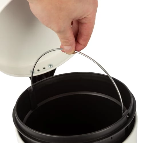 Poubelle ronde compacte à pédale en métal de 5L avec couvercle idéale pour les cuisines et les salles de bain Couvercle à pédale pour plus d’hygiène et de commodité lors du rangement des zones autour de la maison Seau intérieur en plastique amovible pour un vidage et un nettoyage rapides et faciles Fabriqué à partir de fer solide et durable avec un revêtement en poudre bleu mat Contenu : 1 poubelle à pédale de 5 l, dimensions : diamètre/h : 20,5 x 28,5 cm, bleu. Classique et discrète, cette poubelle à pédale est parfaite pour la salle de bain ou les toilettes. Elle s’ouvre facilement grâce à la pédale à pied et se ferme en douceur. Le seau intérieur en plastique est équipé d’une poignée qui permet de le retirer facilement pour vider la poubelle. Pas forcément glamour mais très utile, la poubelle fait partie des indispensables de la maison. Alors autant la choisir belle, fonctionnelle et de bonne contenance. Parce qu’elle ne prend pas beaucoup de place, celle-ci est particulièrement recommandée pour la salle de bain ou les toilettes. Pour que votre salle de bain devienne vraiment confortable, elle mérite toute votre attention. Surtout soignez les détails : l’éclairage, l’harmonie des couleurs et des rangements à profusion pour tirer parti du moindre espace et optimiser au maximum la surface disponible. Si vous avez la chance d’avoir une fenêtre, ajoutez quelques plantes et vous disposerez d’une vraie pièce à vivre où chaque membre de la famille aura plaisir à passer du temps. Dans chaque pièce de la maison, Compactor vous aide à venir à bout du désordre grâce à des solutions de rangement à la fois fonctionnelles et esthétiques. Faites confiance à l’expérience de Compactor, une entreprise familiale française au service de vos rangements depuis 1983 ! LIVRAISON GRATUITE à partir de 60€