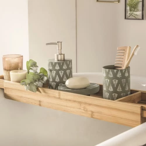 Cette gamme est conçue pour transformer vos accessoires de salle de bains en objet de décoration. Ce set de pot et brosse WC est conçu en béton avec son effet brossé et ses motifs en reliefs.
