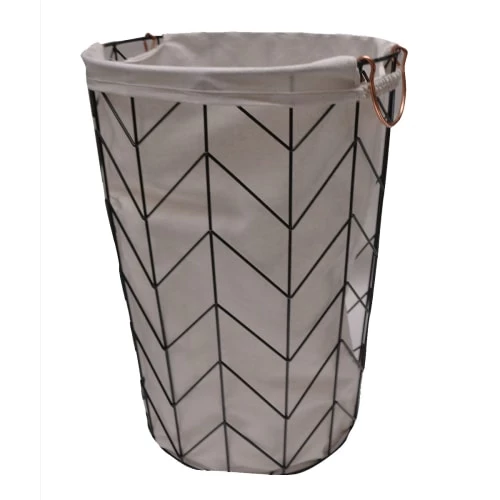 Home Bain Paniers à Linge Lingère En Métal Géométrique Avec Sac En Tissu Métal Noir Et Cuivre