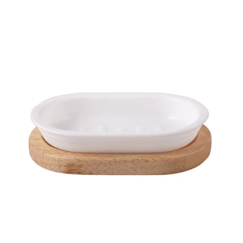 Home Bain Rangements Salle De Bain Porte Savon Avec Socle Blanc Et En Hévéa