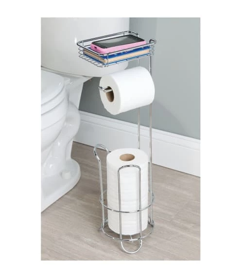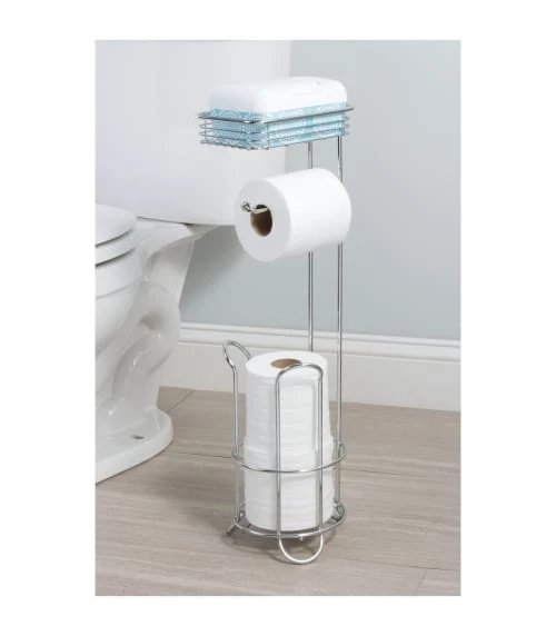 IDesign Rangements Salle De Bain Dérouleur Et Réserve à Papier Toilette Avec Petit Panier – Argent