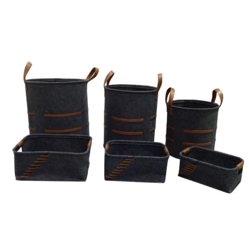 Panier à linge / Corbeille à linge / Panier de rangement / Cube de rangement dressingMEUBLETMOI vous présente ce lot de 6 corbeilles robuste et tendance. Elles seront un accessoire indispensable pour votre salle de bain et vos rangements. Posées à même le sol, les corbeilles à linge deviendront un élément déco à elles seules!Ces paniers à linge conviennent aussi pour tout autre usage : Utilisez-le pour ranger vos vêtements, des bricoles, des choses importantes ou bien disposez-le comme corbeille à papier à côté de votre bureau. Les plus du produit : Corbeille multifonction en feutre. Assure l’ordre dans votre appartement / maison. Plusieurs tailles de corbeilles disponibles (Petit, Moyen, Grand). Plusieurs tailles de paniers disponibles (Petit, Moyen, Grand). Caractéristiques : Matériau résistant en feutre polyester. Poignées intégrées simili. Dimensions corbeille (Longueur x Hauteur x Profondeur): Petit : 29 x 13 x 19 cm / Moyen : 33 x 15 x 22 cm / Grand : 37 x 16 x 27 cm. Dimensions panier (Diamètre x Hauteur): Petit : 32 x 35 cm / Moyen : 36 x 40 cm / Grand : 40 x 45 cm. N’hésitez pas à nous contacter pour toute demande d’information, nous serons ravis de vous renseigner.