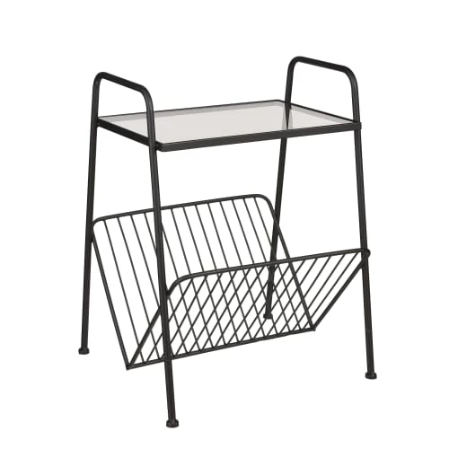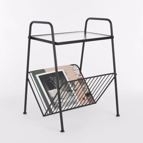 Mica Decorations Porte-revues Et Caisses Table Porte-revues En Verre Et Métal Noir