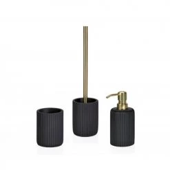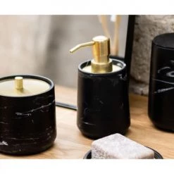 Wadiga Rangements Salle De Bain Distributeur De Savon En Polyrésine Noire Effet Marbre Et Métal Doré
