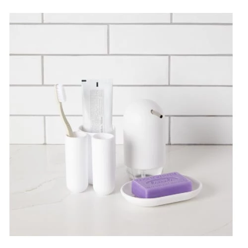 matière : Le pot à brosses à dents Touch possède trois compartiments séparés : un grand pour les choses plus volumineuses comme le dentifrice ou les brosses à dents électriques et deux petits pour les brosses à dents de taille normale. Matière : Plastique Couleur : Blanc Longueur : 10 cm Largeur : 8 cm Hauteur : 10 cm