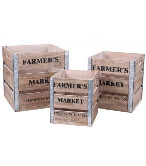 Set de 3 Caisses en bois pour ranger toutes sortes d’objets de la maison ou à disposer sur le plan de travail de la cuisine pour y ranger les légumes, fruits…