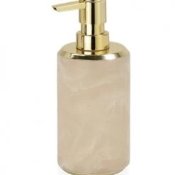 Wadiga Rangements Salle De Bain Distributeur De Savon En Résine Effet Marbre Rose Et Métal Doré