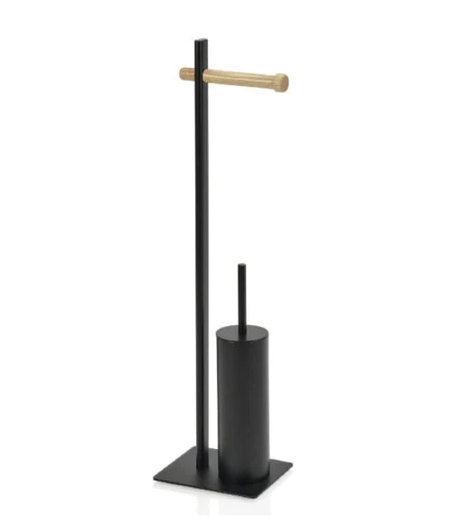 Wadiga Rangements Salle De Bain Dérouleur Papier Toilette + Brosse WC En Métal Noir Mat Et Bois