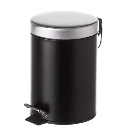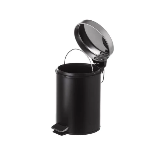Wadiga Rangements Salle De Bain Poubelle Ronde à Pédale En Métal Noir 3L