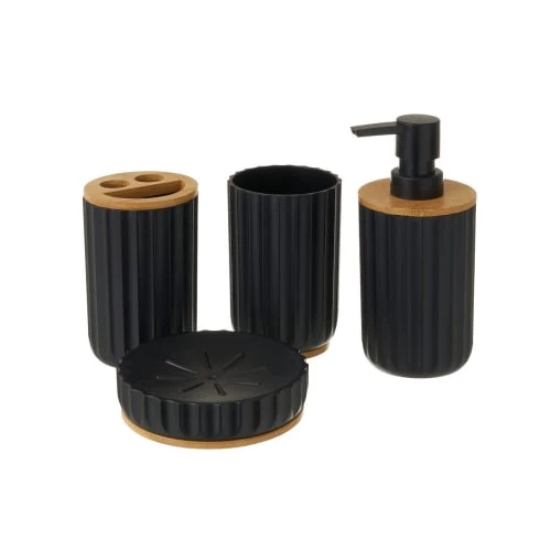 Dimensions: Distributeur: 8X7,50X17,50cm / Gobelet: 7,50X7,50X12cm / Porte brosses à dents: 7,50X7,50X12 / Porte Savon: 11,50X11,50X3,10cm